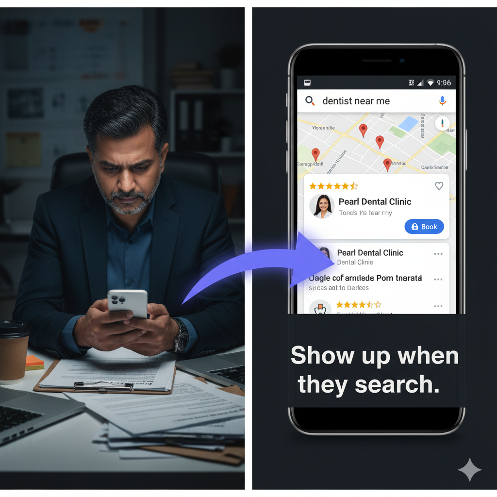 Problem: Many excellent dental clinics are virtually invisible online because they haven't optimized their presence for local search. They have a website, but they're missing the crucial step of connecting it to Google's local ecosystem.