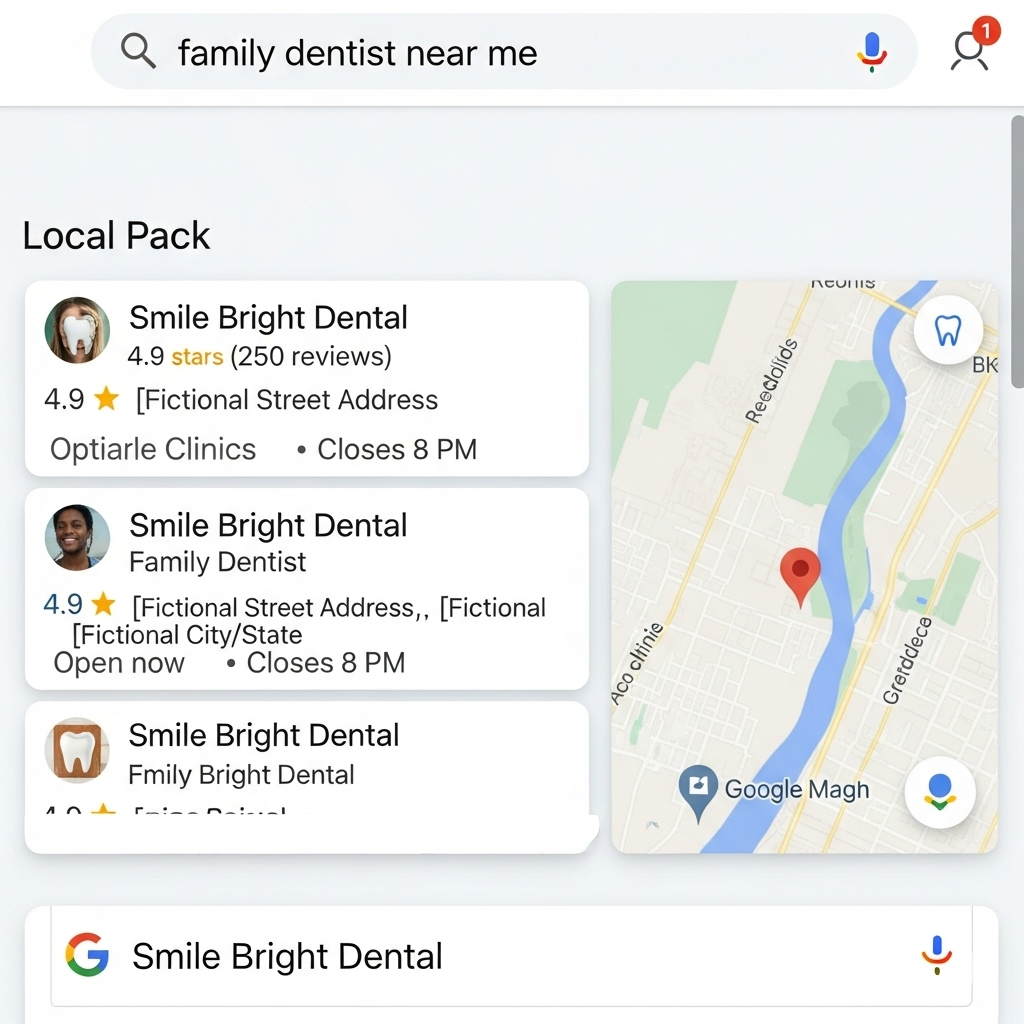 I build websites for dentists that are fast, secure, and perfectly optimized for mobile phones—because a patient with a toothache is almost always searching on their mobile device. By ensuring your name, address, and phone number are consistent and prominent, and by structuring your site correctly, we can give you the best possible chance to appear in the coveted Google Maps "3-pack," which is where the majority of new patients come from.
